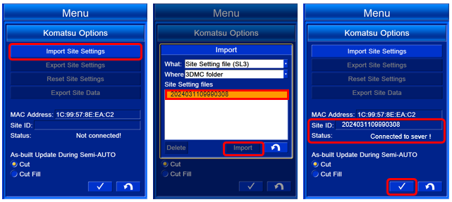 4. Import the downloaded file to each ICT excavator and ICT bulldozer and configure the settings.
