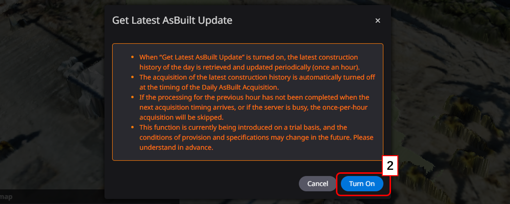The acquisition of the latest construction history is automatically turned off at the timing of the Daily AsBuilt Acquisition.