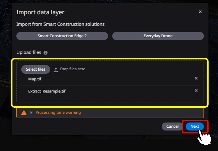 2. 【"2"Upload ortho data files by drag & drop or from a local folder.】