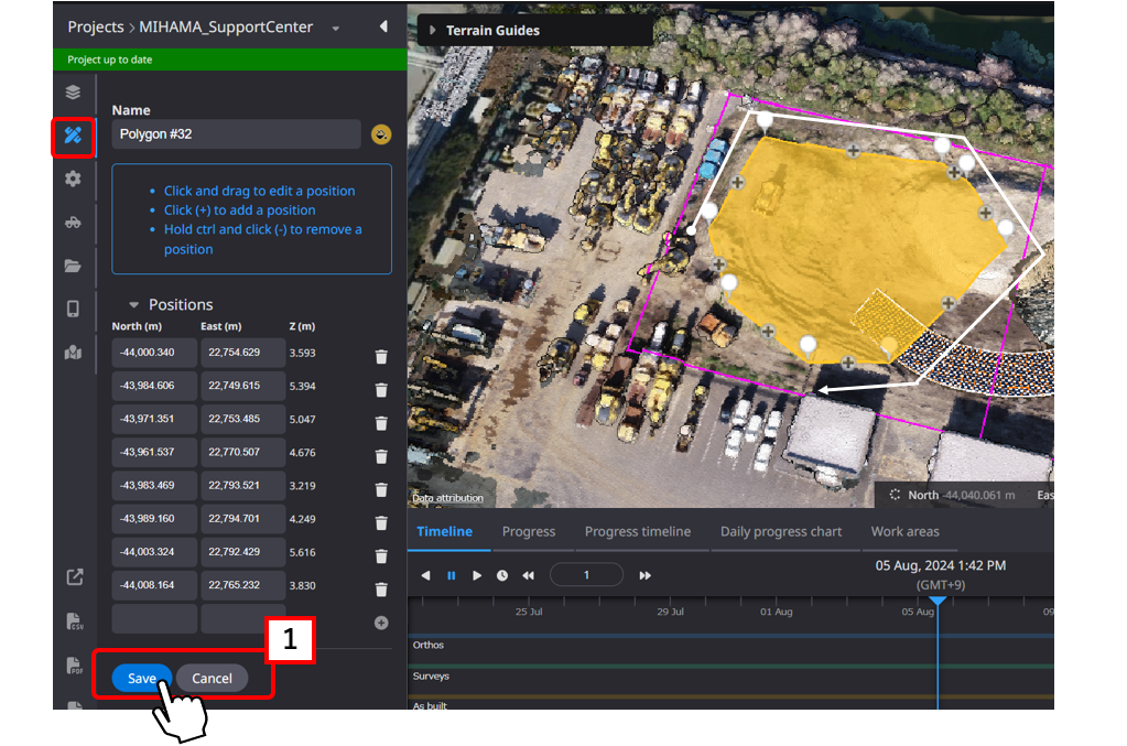 6. Clicking on 【"1" Compute cut and fill balance】 to set the amount of soil cut and fill to zero within the selected area.