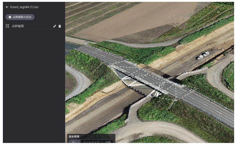 Previously, the point cloud editing function for removing unwanted objects could only attach a plane to the area to be removed, making it impossible to remove a bridge over a valley. Now, a function to add a break line to the unwanted object removal area has been added, allowing the user to specify the removal area more flexibly.