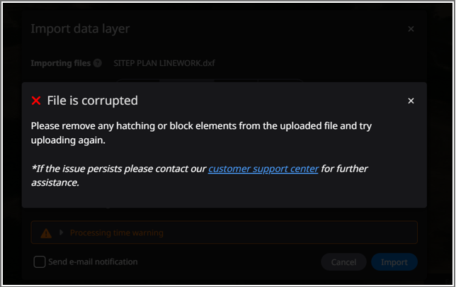 Remove those items from CAD file so that Dashboard can read the file properly.