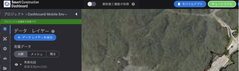 当日の最新の施工履歴を表示できるようになりました。 画面左上の「最新施工履歴の取得」トグルをONにすることで、施工履歴を1時間に1回取得・更新して表示することが可能になります。 これにより、当日の施工状況をアプリ上で、確認することができます |