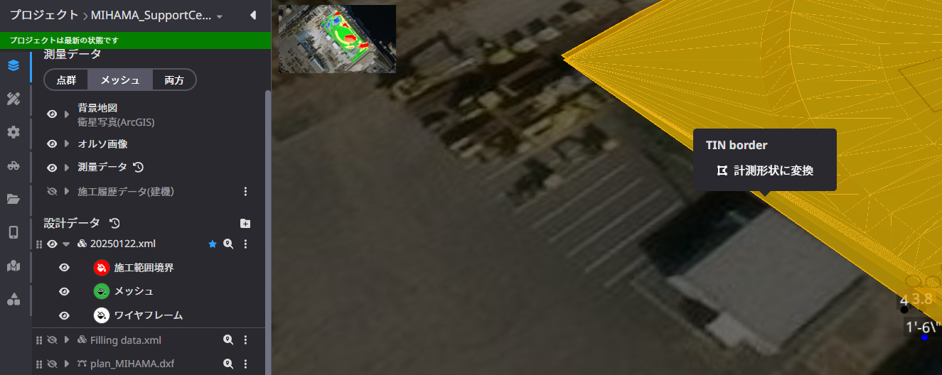 ・ICT _Latest、 3DMG _Latestにマウスを当てると、当日の施工箇所の色が変わり、当日どこを施工しているかが確認できます。